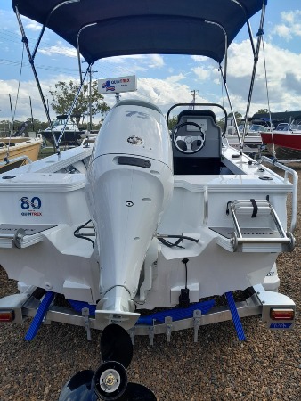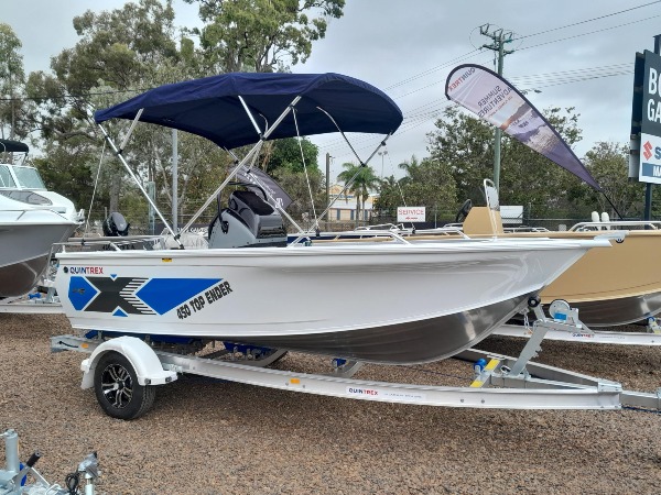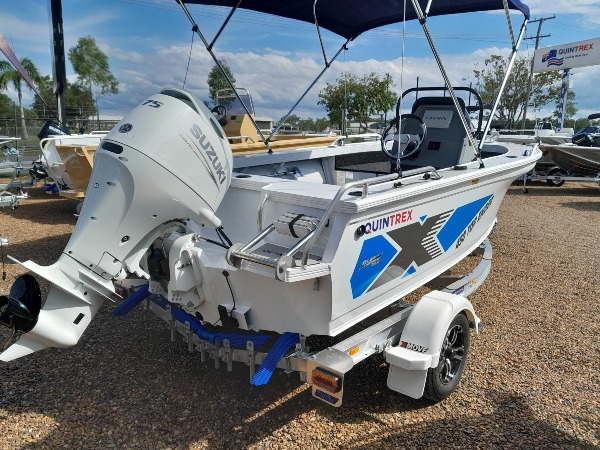 Quintrex 450 Top Ender, Blade Hull and Flared Bow for Smoothest Driest Ride in its Class, White Suzuki lean burn 75HP outboard on a Quintrex 1,100kg ATM Aluminium I beam Braked Trailer. Garmin EchoMap 95sv GPS/Sounder with a GT54 transducer. This is a great fishing or family boat rated to 5 people. FOR SALE $47,700. This is a great package if you love your fishing.