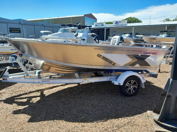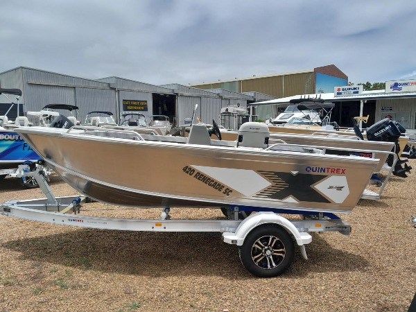 SUZUKI SUMMER SALE UNTIL END OF MARCH 🛥️ FOR SALE: Quintrex 420 Renegade Side Console – White Quintrex Stripes PACKAGE PRICE $32,475 / SAVE $1,175 / SALE PRICE $31,300 ________________________________________ 🚤 Outboard Details: • Engine: Suzuki Lean Burn DF50ATL FWD Controls o 50HP, 3-cylinder, 941cc, 4-stroke o Electric start, Power trim, Lean Burn Technology o 3+3 Year Warranty ________________________________________ 📡 Electronics & Controls: o Suzuki SMG4 Digital Multi-Function Display o Suzuki Side Mount Controls o GT54UHD Transom Mount Transducer ________________________________________ 🚚 Trailer: • Quintrex 1098kg ATM Aluminium I-Beam Trailer with brakes (Great for carrying extra gear for camping trips) o Includes 12 months QLD trailer rego ________________________________________ 🧰 Features & Inclusions: • Console 5 Rod Storage • Quintrex Blade Hull, Cuts through rough water like a knife • Seat Position in Front Casting Deck • Rear Casting Platform with Live Bait Tank • 2 x Angler Sport Seats • Transducer Brackets • Live Bait Tank • Side Pockets • Electric Trolling Motor Bracket • Large Accessory Kit (Nav Lights, Anchor Light, Auto-Bilge, Isolator Switch, Switch Panel) • Transom Step and Rail • Century Marine Performance 680 Maintenance-Free Battery • Suzuki 25L Fuel Tank with Gauge • Water Trap Fuel Filter ________________________________________ 🛟 Safety & Compliance: • Smooth Water Safety & BMT Kit (up to 4.4m) includes: o Anchor kit o Paddles o Mirror o Vee sheet o PFDs for max rating o Motor support bracket o Tie-down strap • 12 months QLD boat registration ________________________________________ Available now at Boats Galore Bundaberg SUZUKI SUMMER SALE UNTIL END OF MARCH Don't miss this – PACKAGE PRICE $32,475 / SAVE $1,175 / SALE PRICE $31,300 Available Now – Get on the Water!