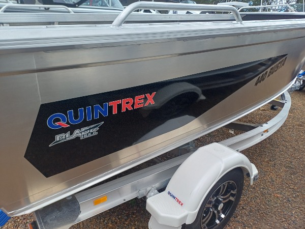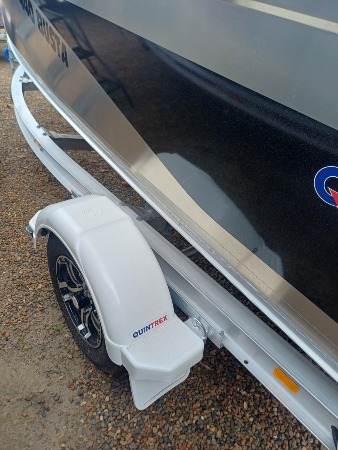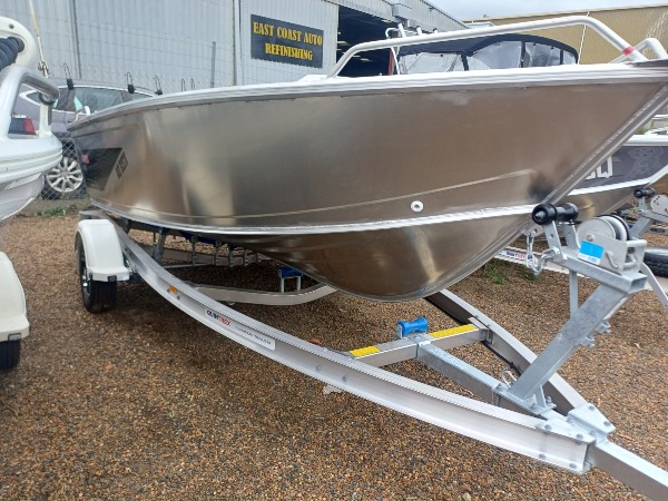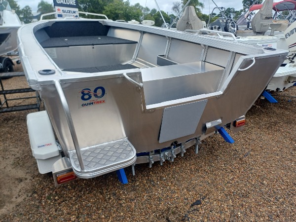 Black 80th Anniversary Quintrex 440 Busta Tiller Steer with a Blade Hull for the Smoothest Driest Ride in its Class, with a Suzuki lean burn 60HP tiller outboard on an unbraked 749kg ATM T Alloy Trailer. This is a great fishing or family boat rated to 4 people. Includes: - Smooth water Safety and BMT kit; Anchor kit, paddles, mirror, v sheet, PFD, motor support bracket and tie down strap. - Century marine MP680 battery and battery box - 25l fuel tank and gauge - Water trap filter - 12mths QLD boat & trailer rego SUZUKI SPECIAL - $27,742 PACKAGE / SAVE $1342 / PAY $26,400. This is a great package if you love your fishing.