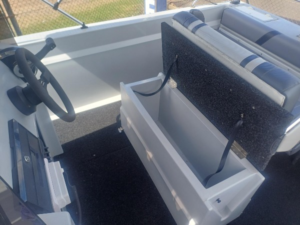 Plenty of power with a 2022 115hp Mercury to get you out to the spots and a Motorguide xi5 80lbs electric motor (dual batteries) to keep you on them. An under seat eski, carpeted floor and a new Bimini will make it more comfortable for all on board. After a good session on the water take it easy with the electric winch!