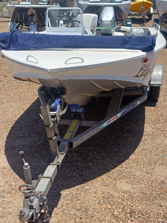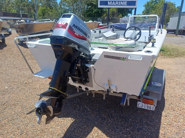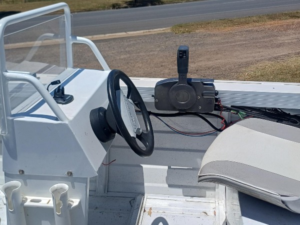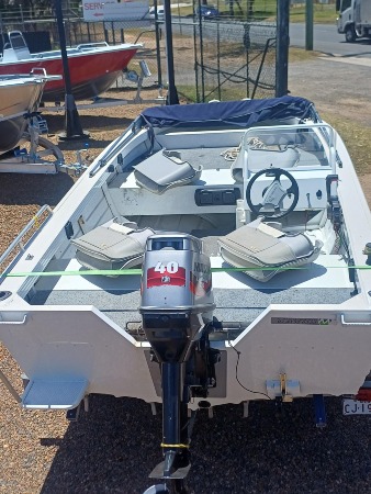 Load up the family and hit the dams, creeks or out the front with this versatile little boat! 2007 Quintrex 435 Hornet side console, 40hp Mariner 2 stroke, 25L fuel tank under the rear platform, Humminbird sounder. Make it happen for only $10000